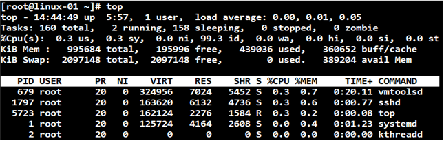 - 실시간으로 프로세스의 동작 상황을 확인하고 싶을 때는 top 명령어를 사용