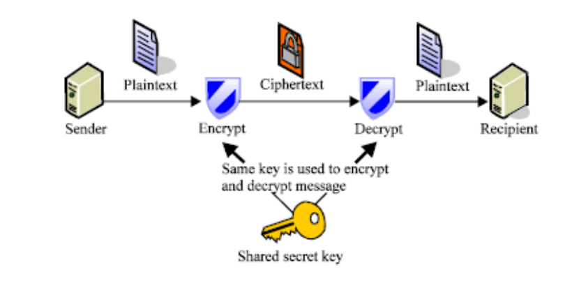 - 암호화하는 키와 복호화하는 키가 동일한 것으로, 사전에 비밀키를 서로 공유하여 사용하는 방식이다
