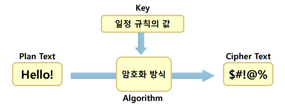- 사람이 인식할 수 있는 문자를 읽기 힘든 기호나 다른 뜻을 가진 문자 형태로 변환하여 내용을 보호하는 것