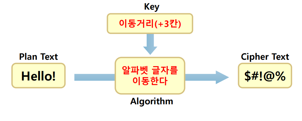 - 알파벳을 3글자씩 밀어서 암호화. LOVE를 암호화하면 ORYH가 된다.